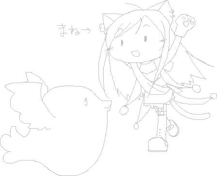 猫とファンタ魚。即席で描きました。